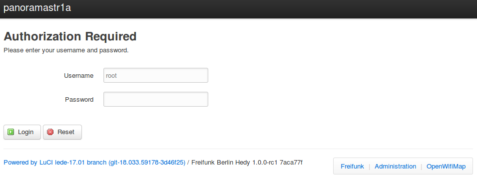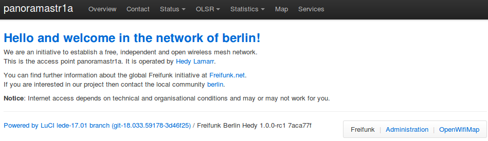 To save a backup of your configuration files, first you need to log onto your router. Either connect with a LAN cable or via WIFI. Load the router's web site at http://frei.funk and click on the "Administration" link on the bottom right.