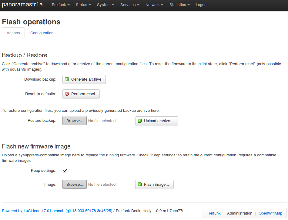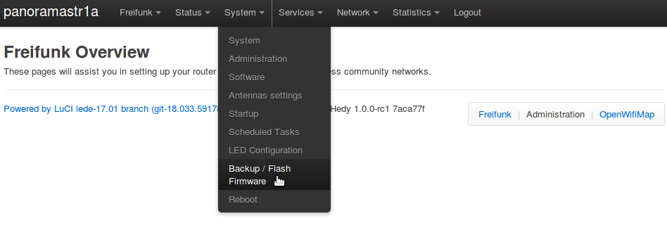 Select the "Backup / Flash Firmware" option from the "System" menu.
