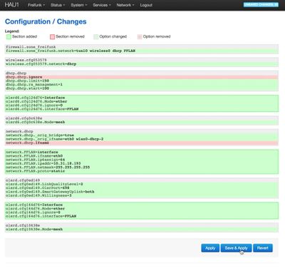 • c) OLSR config ändern um FFLAN einzubinden