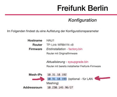 • b) Mesh IP für FFLAN eintragen