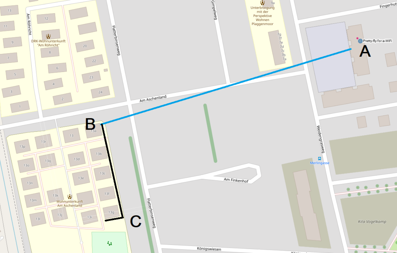 | aktuell | 16:06, 10. Jul. 2020 | 1.367 × 872 (424 KB) | Thilo (Diskussion | Beiträge) | A: Uplink via Futro => WDR4900 als lokales WLAN => Nanobeam AC A-B Richtfunkverbindung Nanobeam AC B-C Ubiquiti Toughcable C: Ubiquiti Toughswitch zur Versorgung der APs |