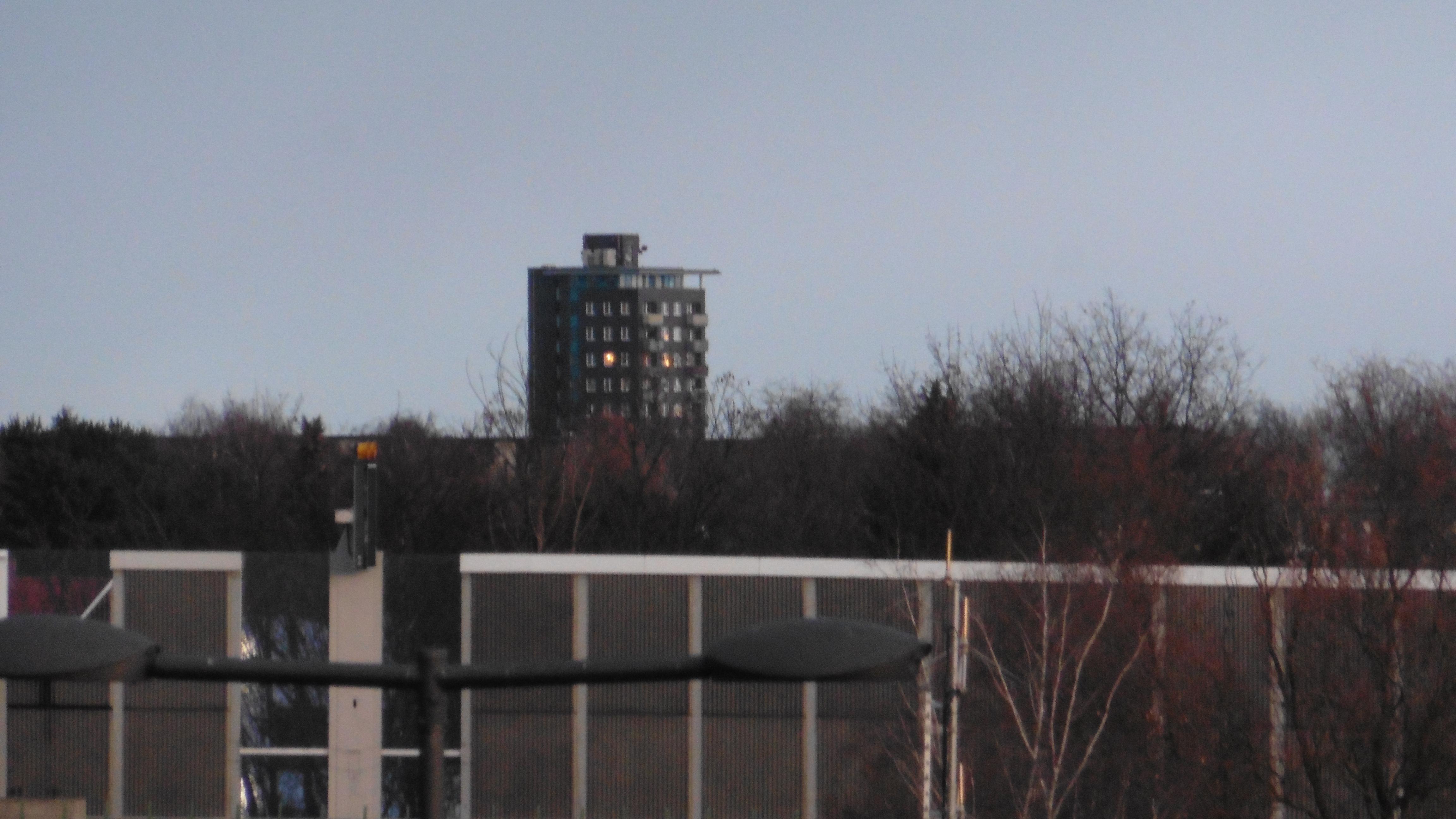 Sicht vom Parkhaus P4 Richtung Wohnhochhaus (Ost-Nordost)