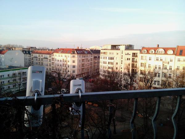 Freifunk-Standort Petnet am Balkon für den Schleidenplatz/Berlin