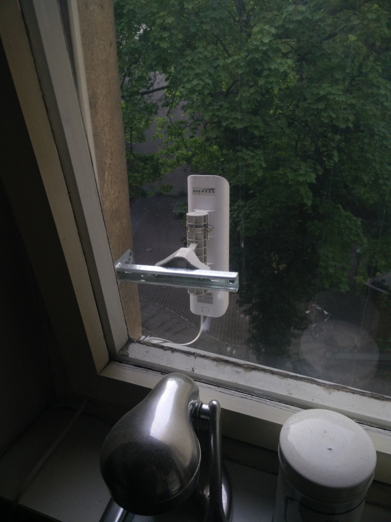 Router am Fenster der Ska95 - funkt in den Schulhof / Berlin