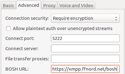 - Falls Dein Jabber Client BOSH (XMPP über HTTP) unterstützt, ist der Server auch über die URL