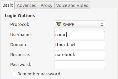 Nach erfolgreicher Registrierung trägst Du einfach name und ffnord.net in Deinem Client ein: