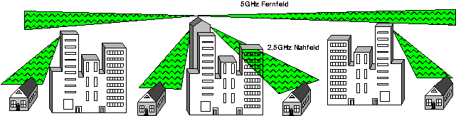 - Fresnel-Zone bei 2.5 Ghz ca. 10-30 Meter.